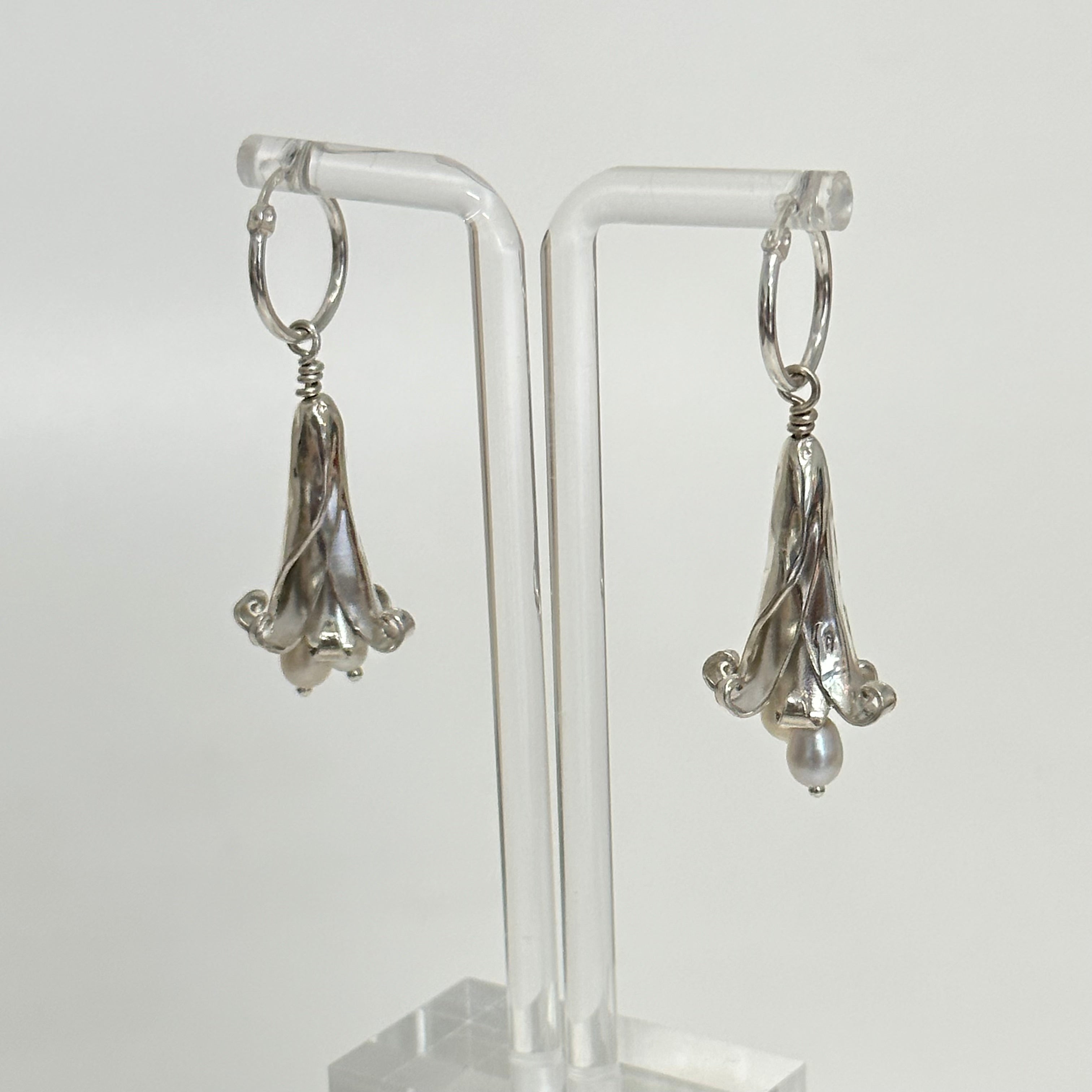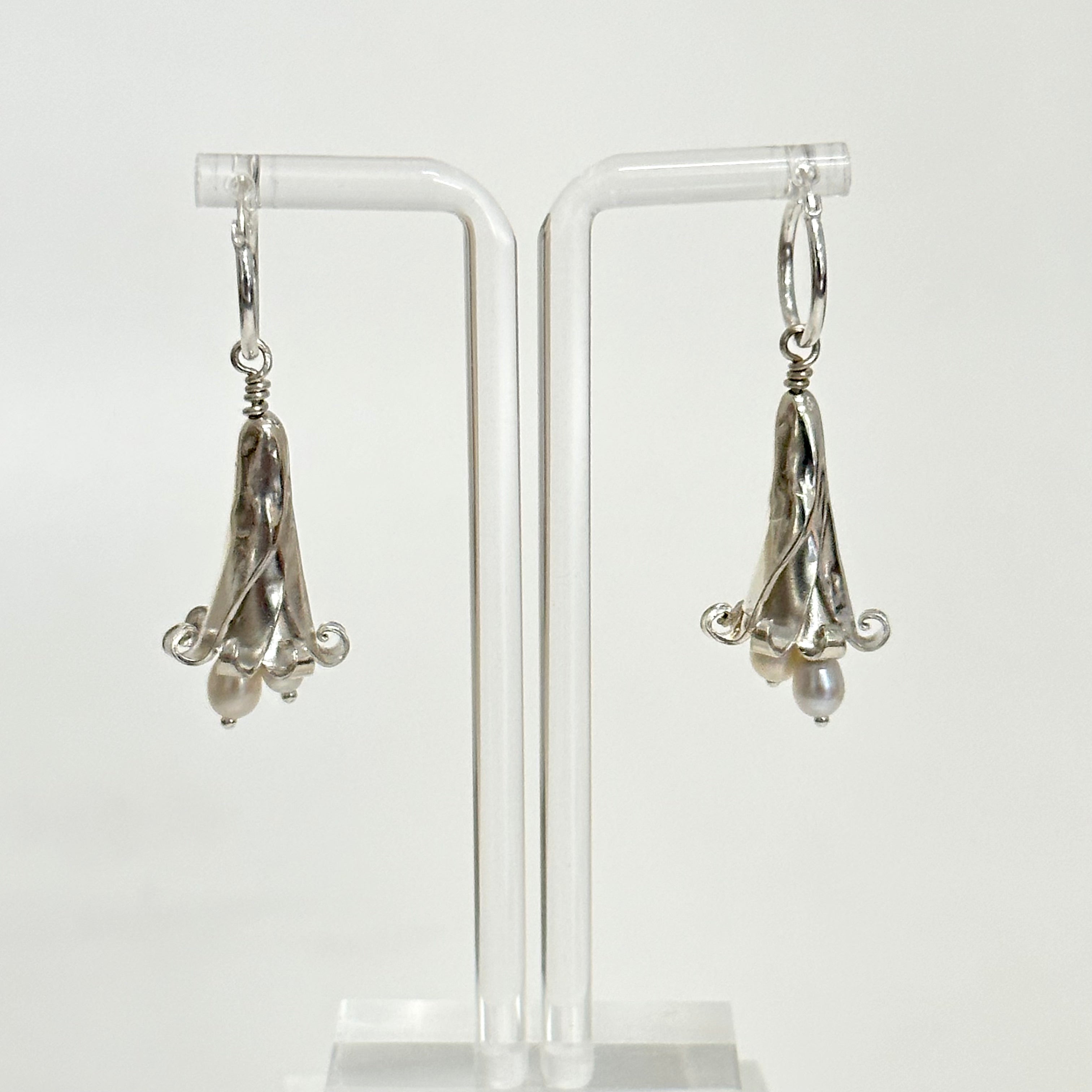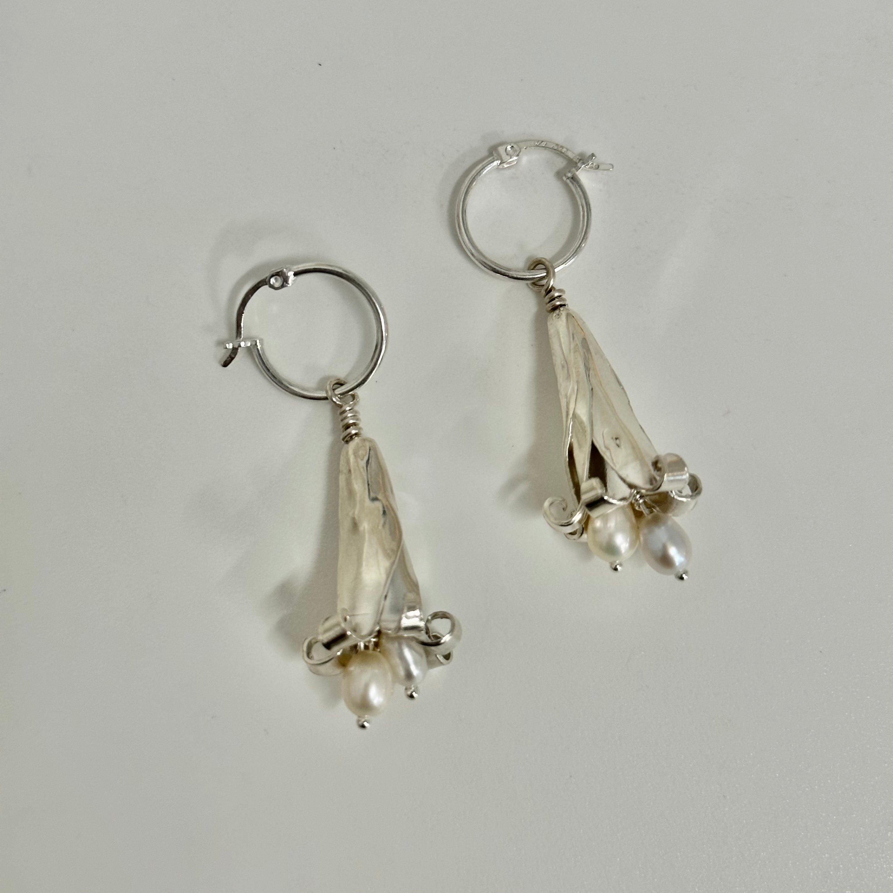 Hallucinogenic in nature, these casted silver versions will hypnotize just as easily, with a gentle tinkling from the freshwater pearls hanging inside.