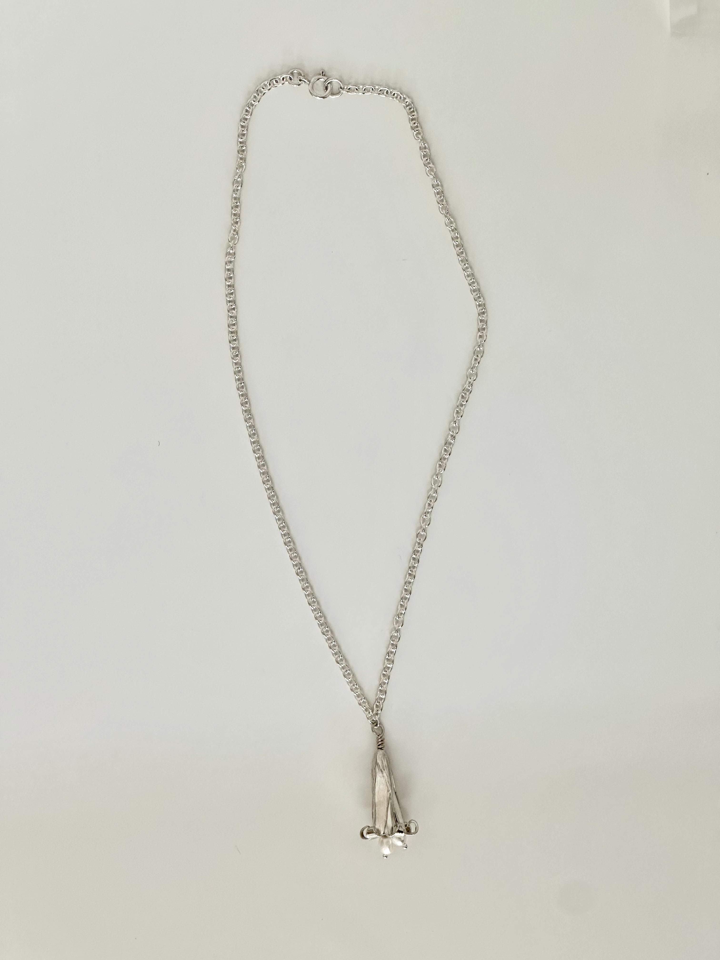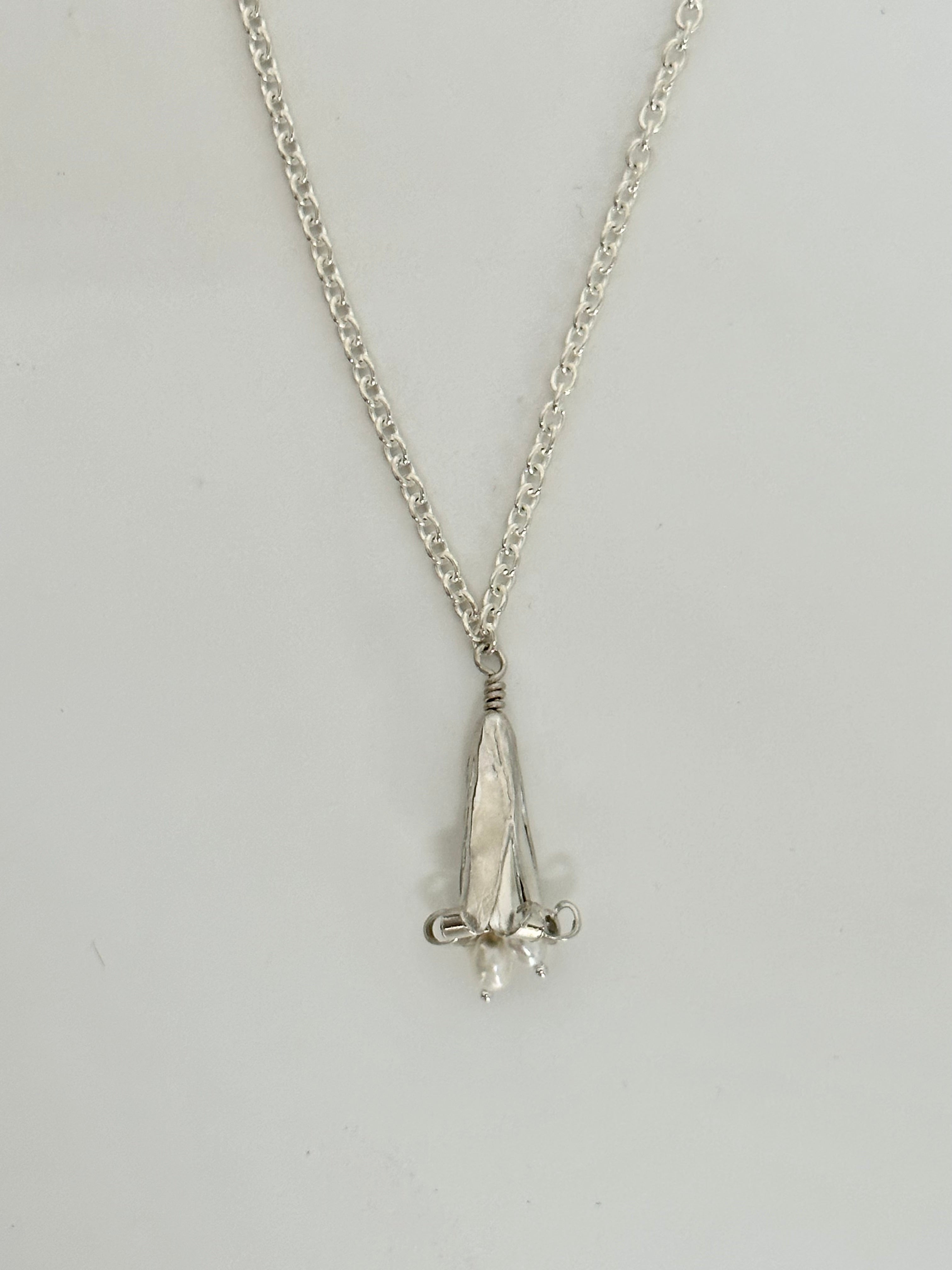 Hallucinogenic in nature, this casted silver version will hypnotize just as easily, with a gentle tinkling from the freshwater pearls hanging inside.