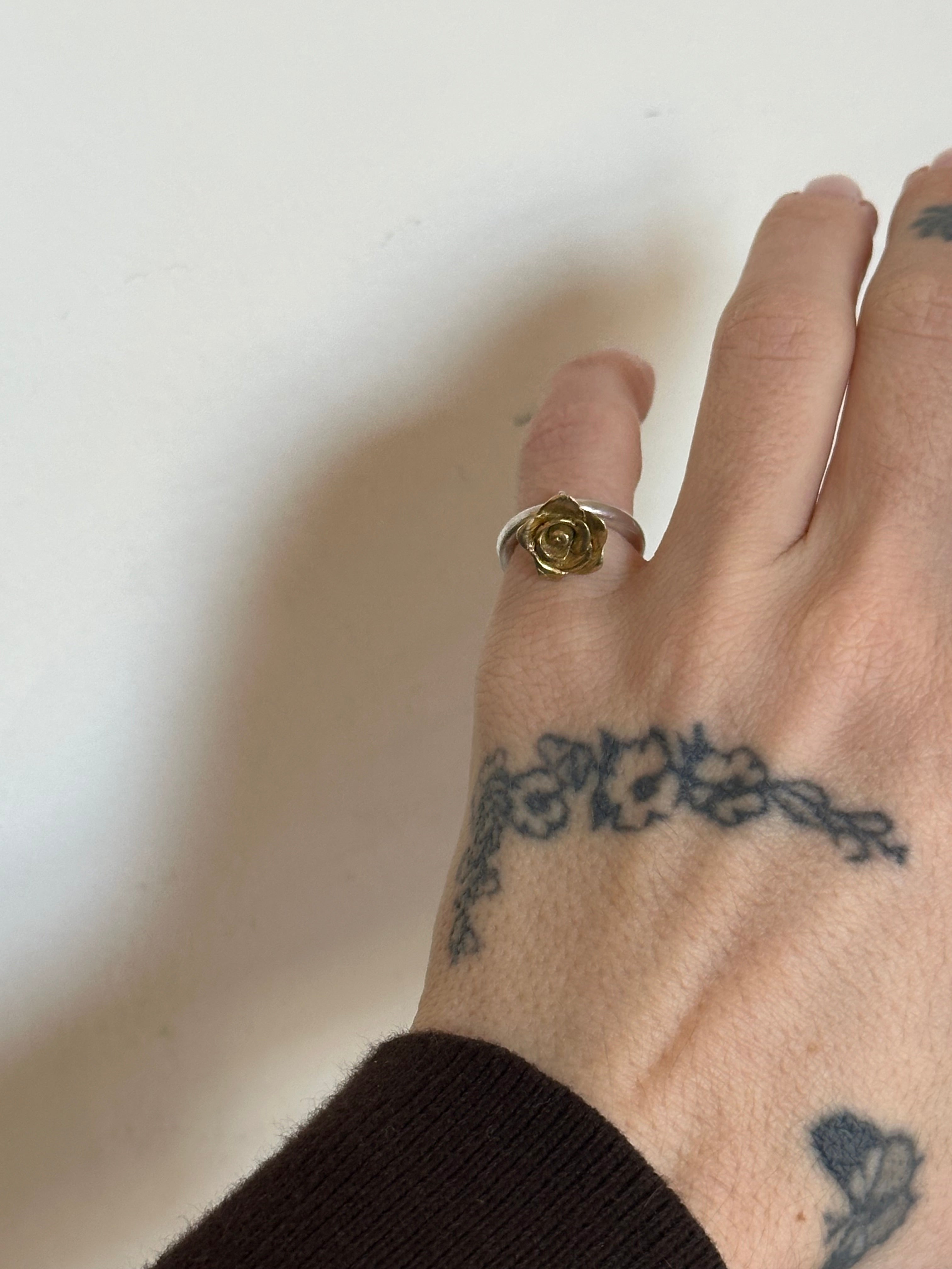 rose is brass, ring is sterling silver