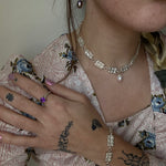 Hand sculpted tile with a flower motif, cast in sterling silver