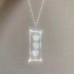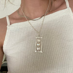 Hand sculpted sterling silver frame holds a veil of butterfly pearls