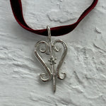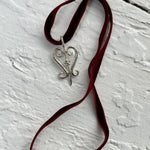 available on sterling silver 18 inch ball chain or deep burgundy velvet ribbon