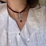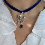 Jester- Sterling silver with a lab blue sapphire/ red garnet