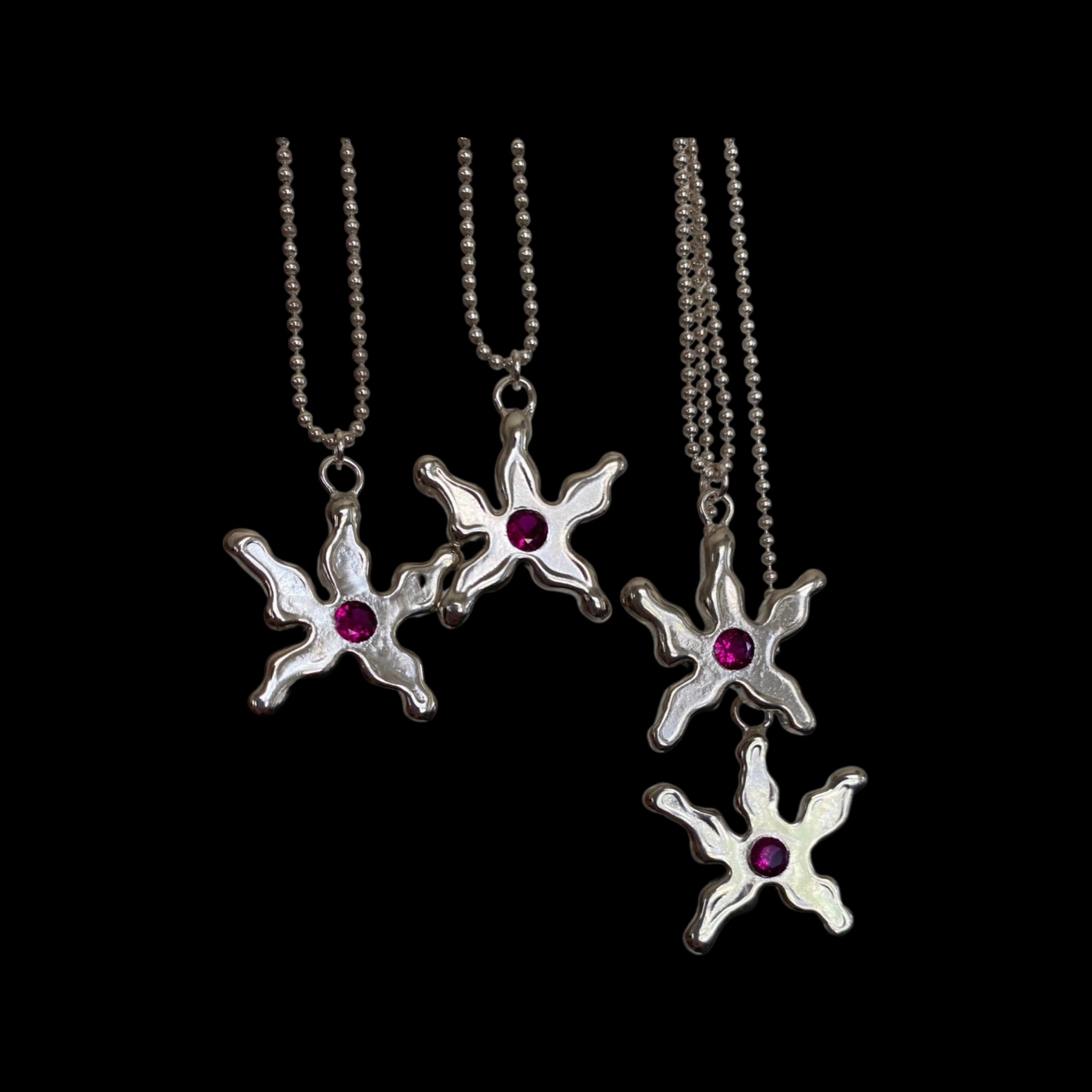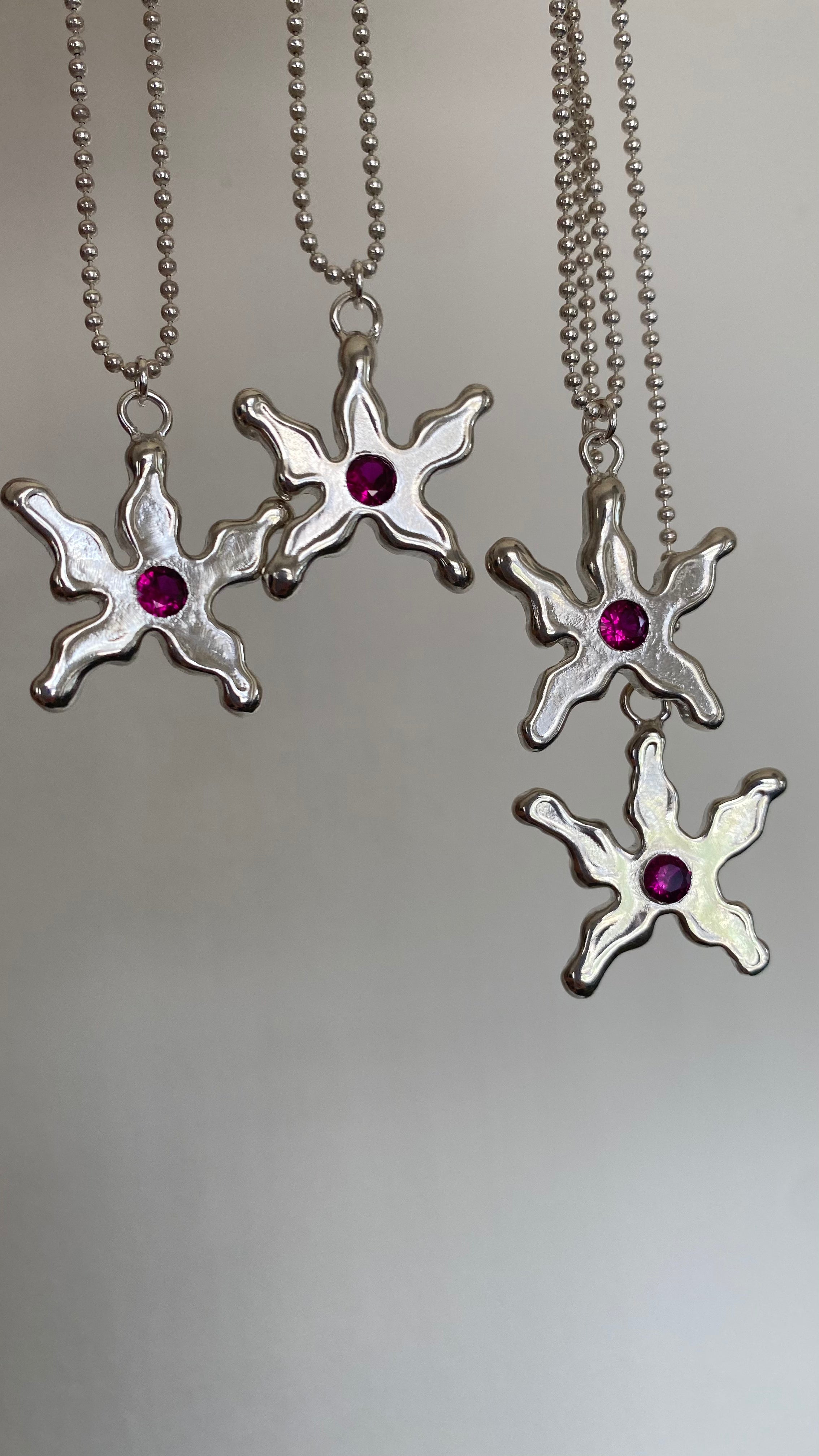 Sterling Silver, lab-grown ruby, 18" ball chain