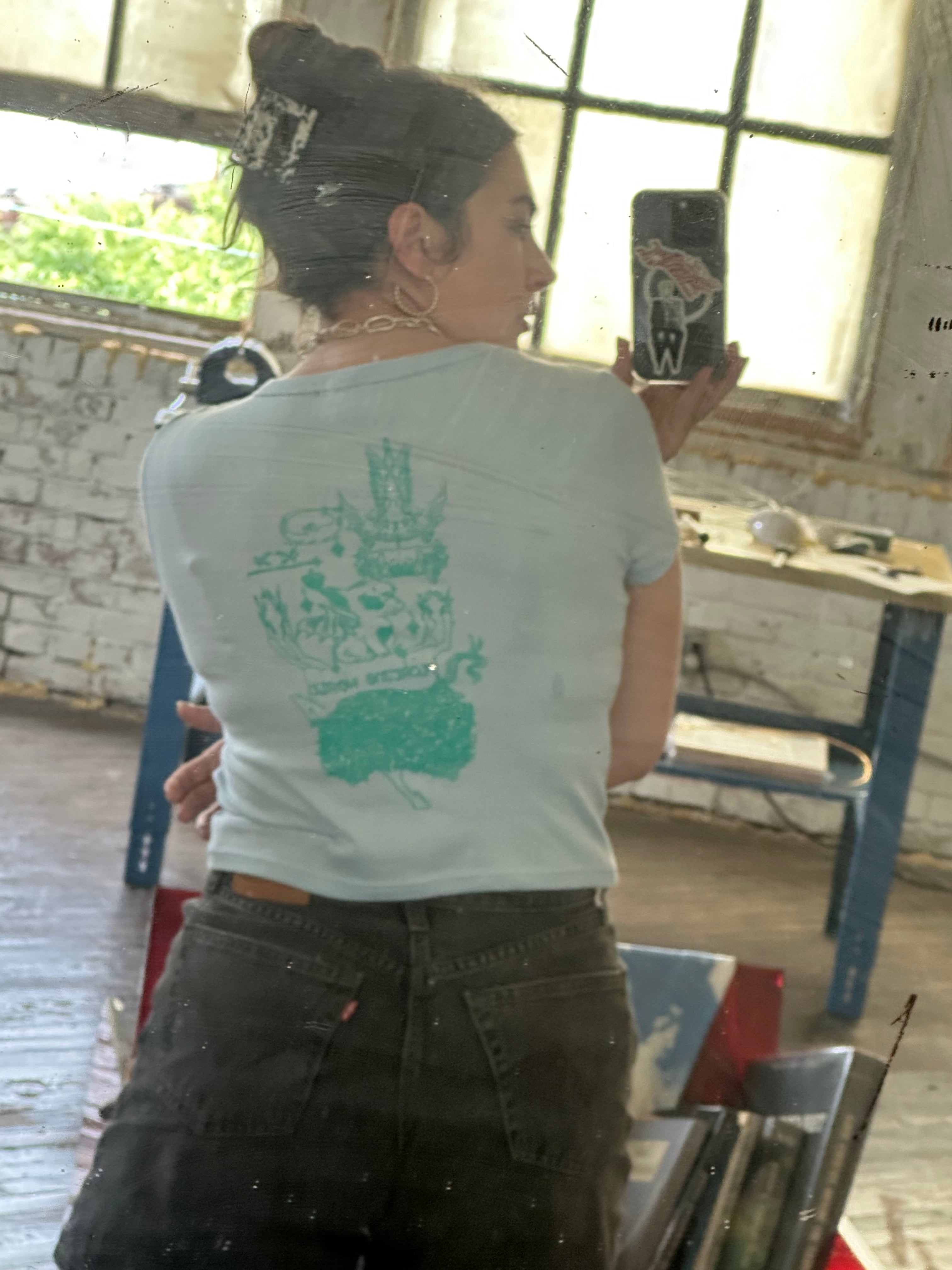 Printed on Bella + Canvas Micro Rib Baby Tee in Baby Blue
