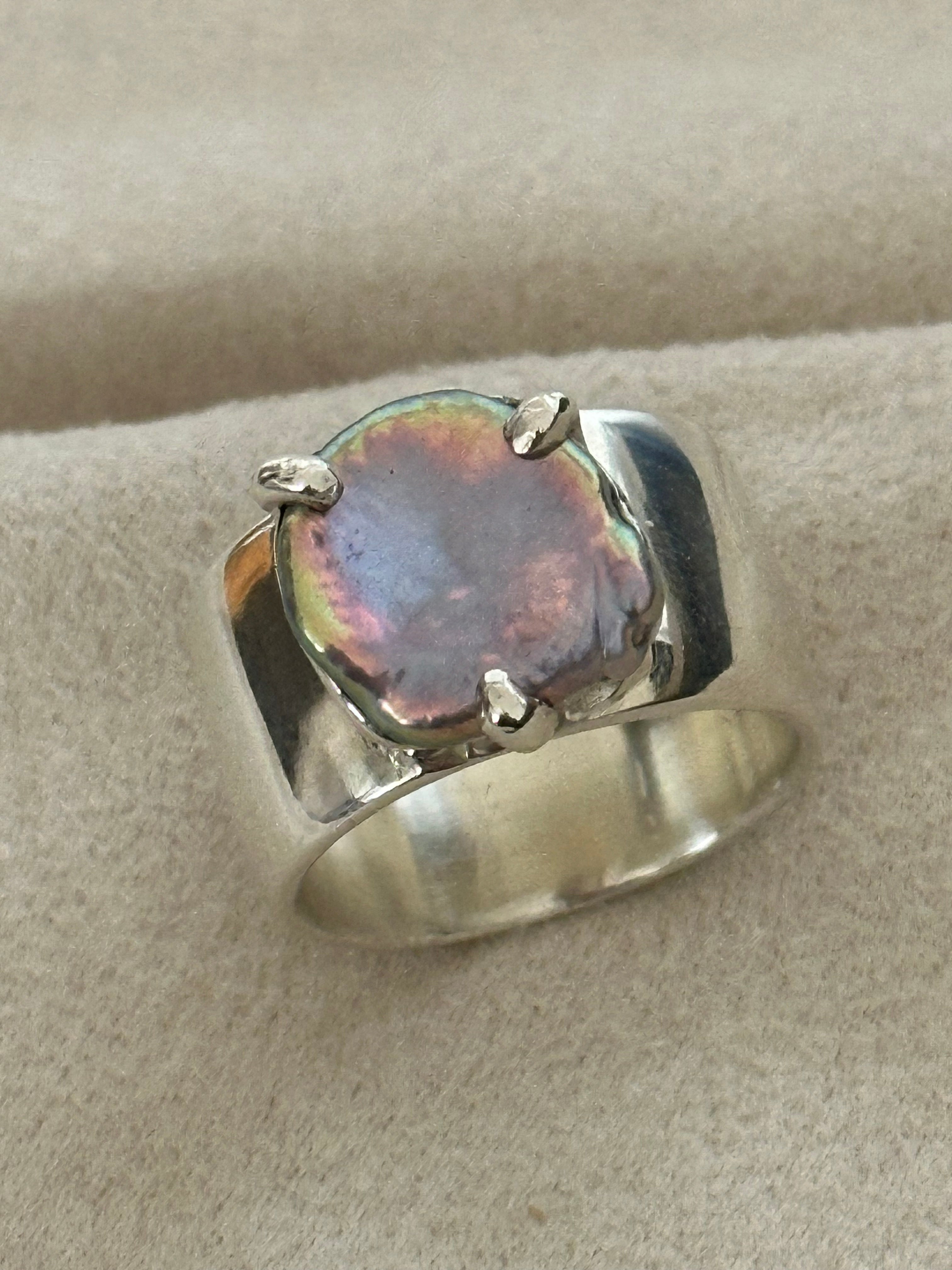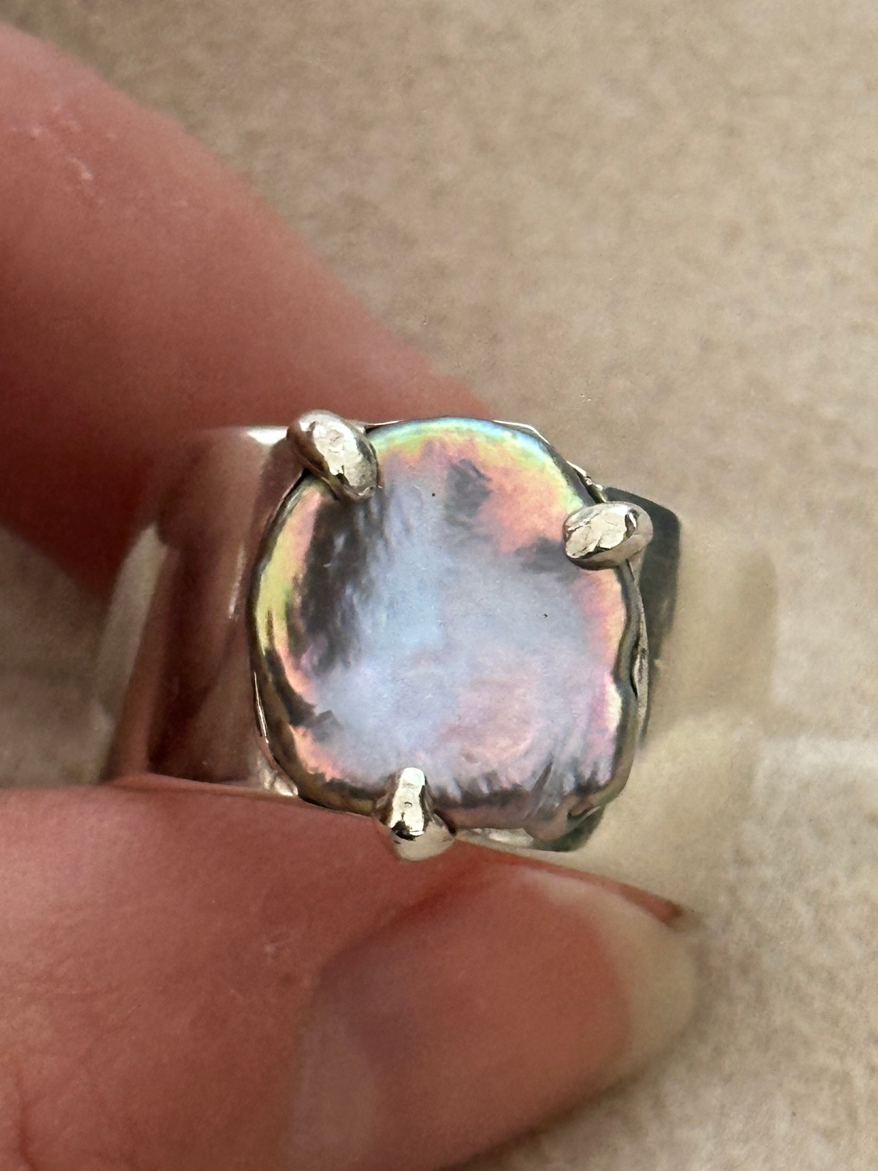 Luminous and sculptural keshi pearl